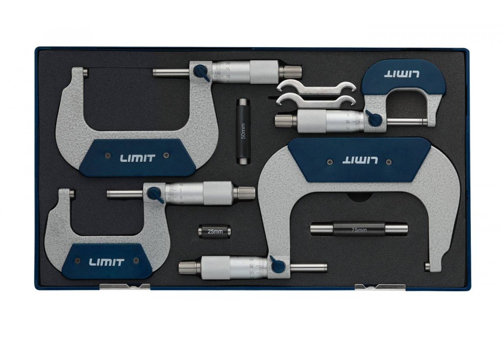 Mikrometr z odkuwanym kabłąkiem i chromowaną na mat podziałką, przeznaczony do pomiarów zewnętrznych. Hartowane wrzeciono o średn. 6.5 mm z dokładnie docieranymi powierzchniami pomiarowymi z węglików spiekanych. Z tuleją ze sprzęgłem ciernym i dźwigienką ustalającą. Wykonanie zgodne z DIN 863.