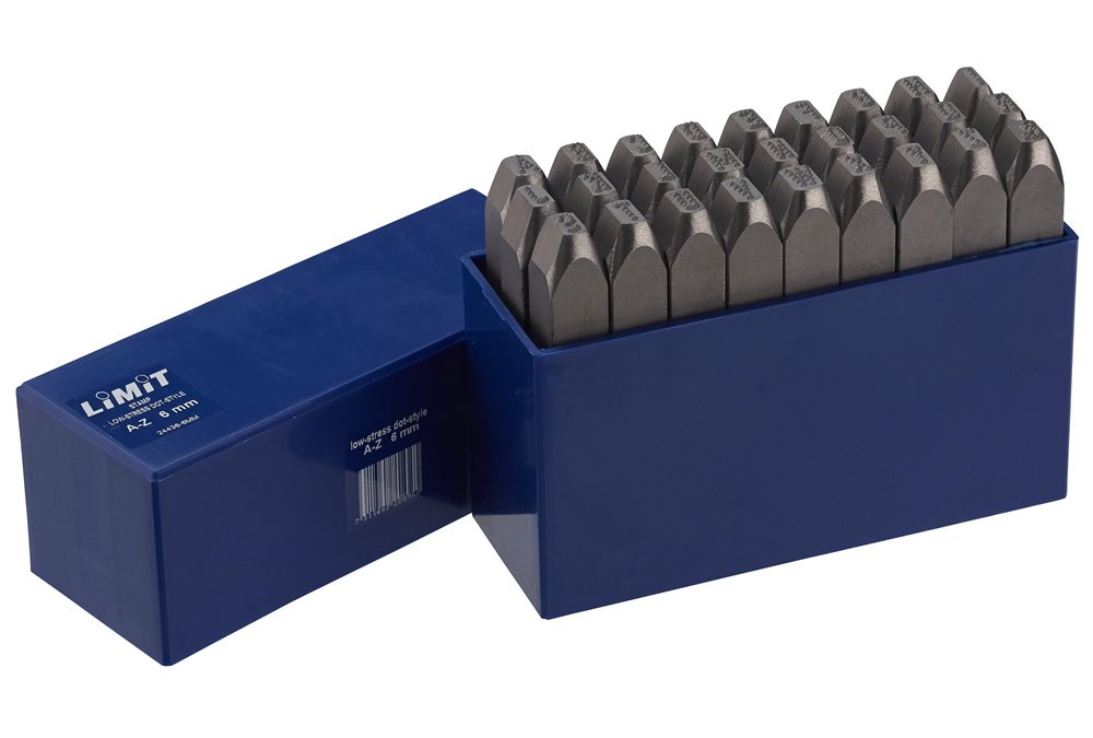Stemple znakujące do stali i innych metali. 27 stempli z literami A–Z i znakiem &. Do wybijania znaków w materiale o wytrzymałości na rozciąganie do 150 kG/mm². Mają konstrukcję ograniczającą do minimum tworzenie naprężeń w materiale, dlatego nadają się do znakowania np. zbiorników ciśnieniowych. Wykonane z hartowanej stali narzędziowej i umieszczone w pudełku z tworzywa sztucznego. Wytwarzają nieduże naprężenia w znakowanym materiale dzięki stemplowaniu punktowemu. Wyeliminowana potrzeba informowania o ryzyku pęknięcia wg norm ASME. Symbole zgodne z DIN 1451 (średnie).Część robocza hartowana do 58-61 HRC. Każdy stempel posiada oznakowanie: symbol, wielkość symbolu oraz międzynarodowy symbol zagrożenia dla oczu. Dostarczane w mocnym, udaroodpornym pudełku z tworzywa sztucznego.