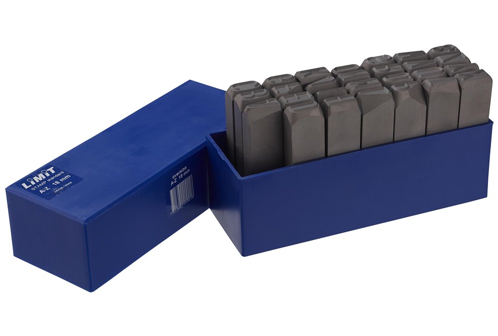 Duże stemple znakujące do stali i innych metali. 27 stempli z literami A–Z i znakiem &. Do wybijania znaków w materiale o wytrzymałości na rozciąganie do 150 kG/mm². Wykonane z hartowanej stali narzędziowej i umieszczone w pudełku z tworzywa sztucznego. Wykonane z najwyższą dokładnością z wykorzystaniem obróbki numerycznej. Symbole zgodne z DIN 1451 (wąskie)Część robocza hartowana do 58–61 HRC. Dostarczane w mocnym, udaroodpornym pudełku z tworzywa sztucznego.