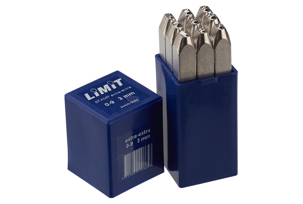 Stemple znakujące do stali i innych metali. 9 stempli z cyframi 0-9. Do wybijania znaków w materiale o wytrzymałości na rozciąganie do 150 kG/mm². Nadają się do znakowania stali nierdzewnej. Niklowane, celem zapobiegania zanieczyszczaniu przez przenoszone cząstki metalu. Umieszczony w pudełku z tworzywa sztucznego. Do znakowania elementów ze stali nierdzewnej. Symbole zgodne z DIN 1451.Część robocza hartowana do 58-61 HRC. Krawędzie boczne sfazowane dla polepszenia widoczności. Każdy stempel posiada oznakowanie: symbol, wielkość symbolu oraz międzynarodowy symbol zagrożenia dla oczu. Dostarczane w mocnym, udaroodpornym pudełku z tworzywa sztucznego.