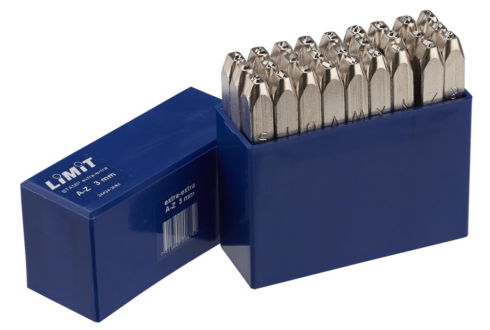 Stemple znakujące do stali i innych metali. 27 stempli z literami A–Z i znakiem &. Do wybijania znaków w materiale o wytrzymałości na rozciąganie do 150 kG/mm². Nadają się do znakowania stali nierdzewnej. Niklowane, celem zapobiegania zanieczyszczaniu przez przenoszone cząstki metalu. Umieszczony w pudełku z tworzywa sztucznego. Do znakowania elementów ze stali nierdzewnej. Symbole zgodne z DIN 1451.Część robocza hartowana do 58-61 HRC. Krawędzie boczne sfazowane dla polepszenia widoczności. Każdy stempel posiada oznakowanie: symbol, wielkość symbolu oraz międzynarodowy symbol zagrożenia dla oczu. Dostarczane w mocnym, udaroodpornym pudełku z tworzywa sztucznego.