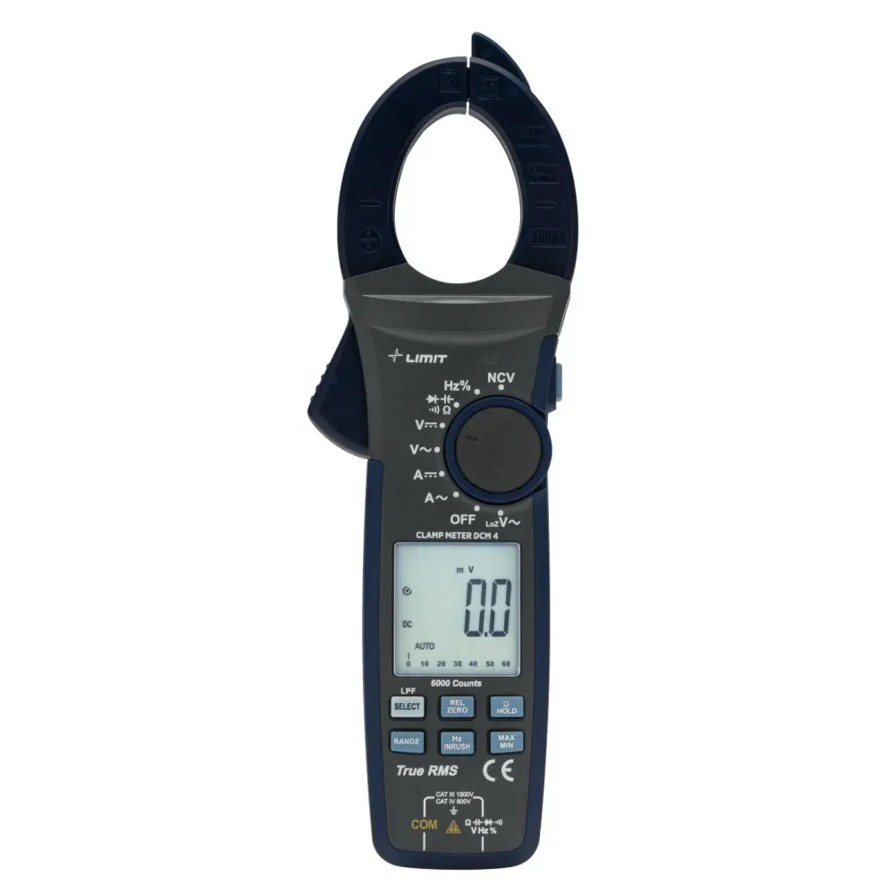 Amperomierz cęgowy/multimetr True RMS z automatycznym wyborem zakresu. Duży wyświetlacz zapewniający wyraźny odczyt. Do pomiaru napięcia stałego/przemiennego, prądu stałego i przemiennego, rezystancji, pojemności, częstotliwości i współczynnika wypełnienia, test diodowy, test ciągłości obwodu. Bezkontaktowe wykrywanie napięcia. Dostarczany w komplecie z kabelkami pomiarowymi, walizką do przechowywania, bateriami i instrukcją obsługi. 6000 zliczeń. Izolacja bezpieczeństwa CAT IV 600 V / CAT III 1000 V.